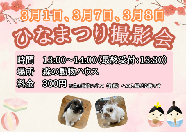 ひなまつりの飾りをつけた可愛いうさぎさんを、ひざの上にのせて一緒に写真を撮ろう。