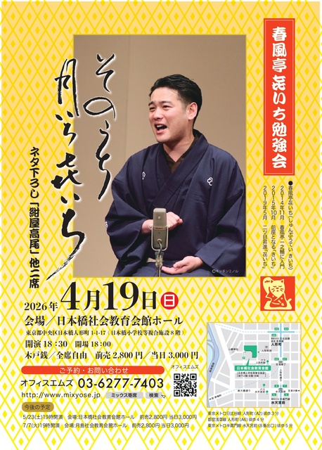 今を時めく落語家・春風亭一之輔の一番弟子「春風亭きいち」。そのきいちによる落語独演会。ネタ下ろしというのは初めて覚えた噺を披露すること、また勉強会というのはネタ下ろしを含む落語会のこと。前座による開口一番のあと、一人で三席の古典落語を口演する。毎回の好評を受け、今回はいよいよ第72回目を迎える。落語初心者、大歓迎! ※きいちの(き)は正式には七を三つ書く草書体漢字