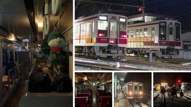 野岩鉄道と約7時間コラボ企画開催。通常は並んで見られる機会が少ない6050型 61103号車と62103号車の“2並び夜間撮影会”を楽しめる。また、車内では夜食弁当と選べるドリンク提供、車内を減灯した特別な状態で、かつて2002年まで運行されていた夜行列車の雰囲気も“仮眠体験”として味わえる。さらに、初電前には貸切列車を運行し、各駅に停車して楽しめる全駅撮影タイムも実施。