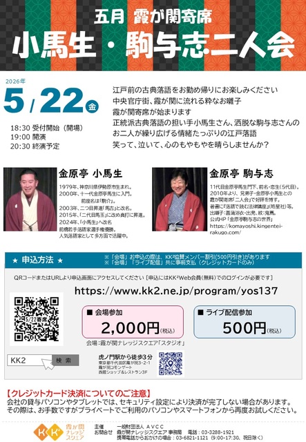 五月霞が関寄席 小馬生・駒与志二人会(2026年)
