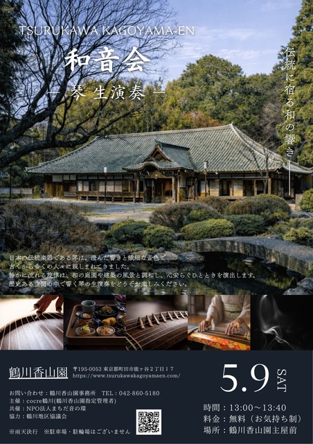 風がやわらかく頬をなでる季節、鶴川香山園にて「和音会 -琴 生演奏-」を開催。今回は、日本の伝統楽器「琴」による生演奏。澄んだ音色が静かな庭園にやさしく広がり、日常の喧騒を忘れさせてくれる。繊細でありながらも凛とした響きは、どこか懐かしく、心の奥にそっと寄り添う。この機会に、自然と伝統音楽が織りなす特別な時間を楽しもう。