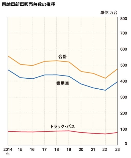 出展:一般社団法人日本自動車工業会 「四輪車新車販売台数の推移」