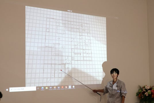 「住宅設計体験会」では、一建設の社員が住宅設計の仕事内容を説明し、3D CADを使った設計の実演を実施。高校生全員が作図用方眼紙で“自分の住みたい平屋住宅”の図面を作成し、代表5名が自作の住宅図面を発表しました。