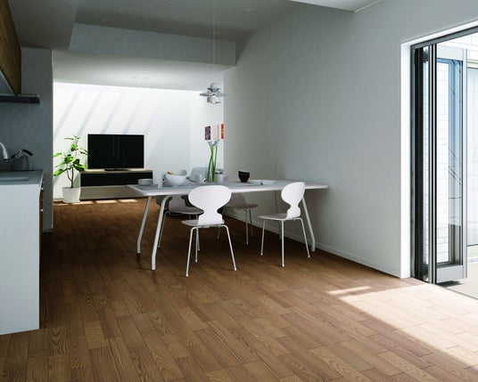 床材の表面化粧材に当社独自のWPC加工を施すことにより、天然木が持つ自然な美しさや風合いはそのままに、高い表面強度を実現。キャスター付きイスや車イスなどによる傷や凹みに強いほか、水がかりにも強く、優れた耐久性を発揮します。