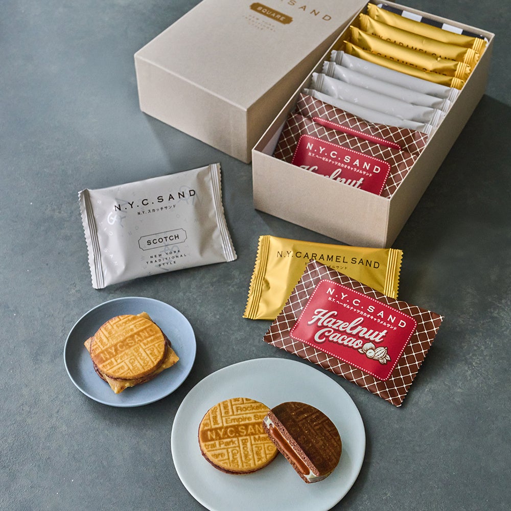 N.Y.C.SANDそごう横浜店限定で「N.Y.ヘーゼルナッツカカオキャラメルサンド2個入」「N.Y.C.S.ギフトボックス10個入」を販売いたします。ちょっとしたプレゼントや少しずついろいろな種類をお楽しみになりたい方へおすすめです。