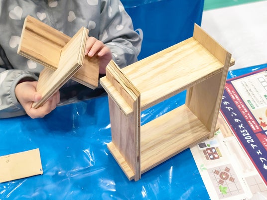 アイダ設計の出展ブースでは、「木育ワークショップ」を開催。当社が推進するサステナビリティ活動の一環として、製造工程で発生する資源(端材)の有効活用と、次世代を担う子どもたちに、木の魅力やものづくりの楽しさを伝える「木育」の機会を提供することを目的としています。参加者は、木が組み合わさる瞬間の感触や完成時の達成感を通して、木造建築の魅力や奥深さを感じていただく機会となりました。