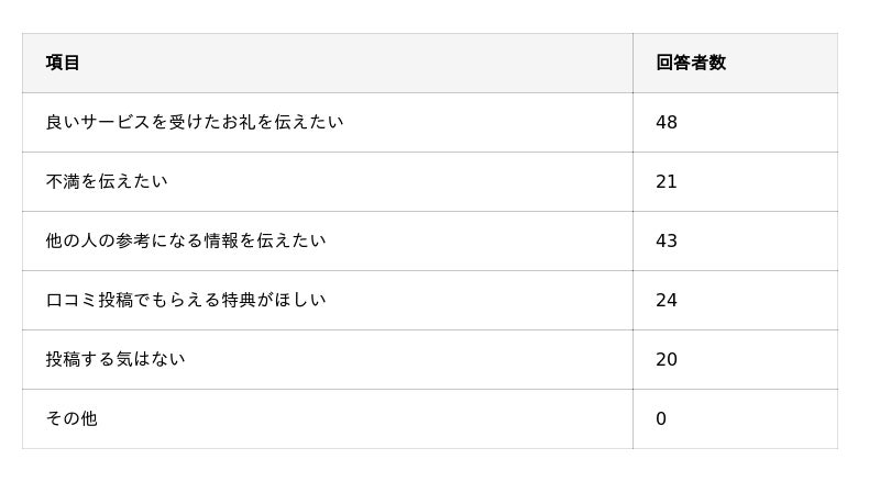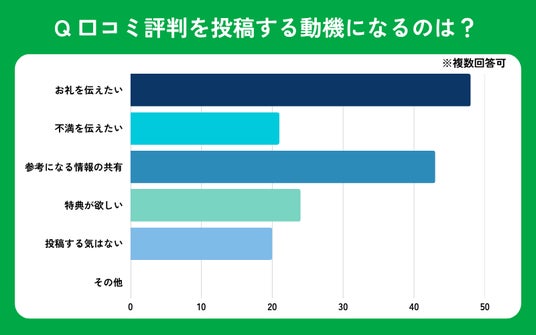 ・口コミ投稿の最も大きな動機になるのは「良いサービスを受けたお礼を伝えたい」。