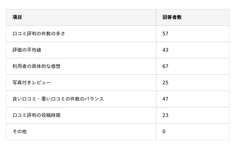 ・口コミ評判を見る際に重視するのは「具体的な感想の内容」「口コミ件数の多さ」「高評価・低評価のバランス」。