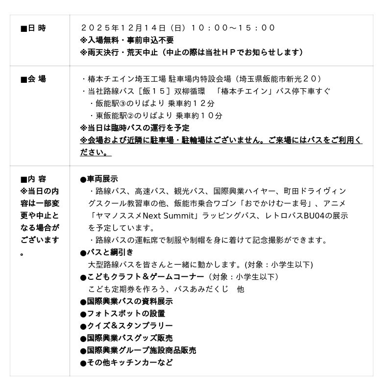 【国際興業バスまつり2025 in飯能 開催概要】