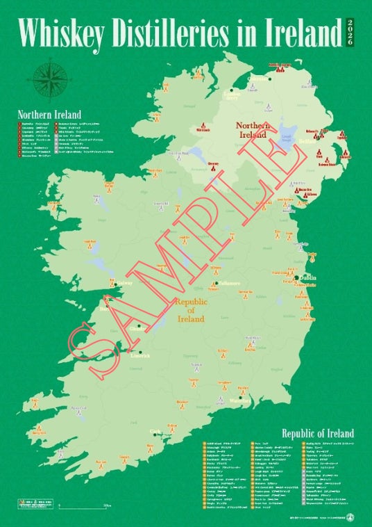 『アイリッシュウイスキー蒸留所ポスター2026』蒸留所ポスターシリーズに新たにアイリッシュが登場。2025年11月現在稼働中、準備中のアイリッシュウイスキー蒸留所(計67ヵ所)を1枚の地図にまとめたポスターです。インテリアにはもちろん、ウイスキーコニサー試験やウイスキー検定の勉強にもご活用いただけます。