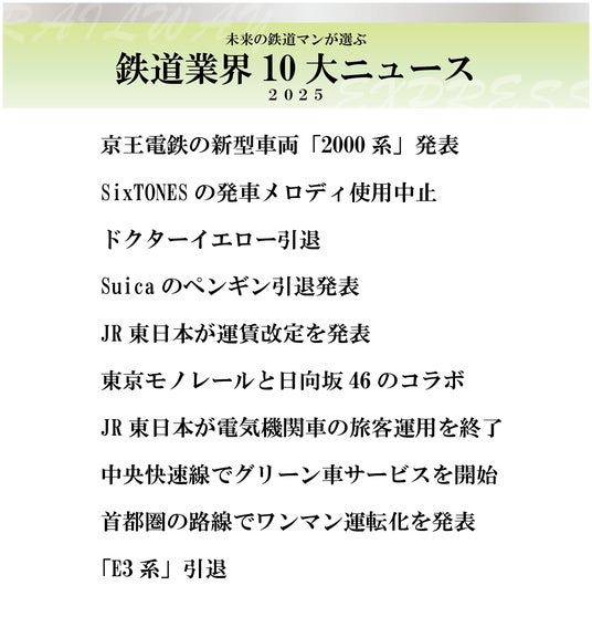 本調査では、鉄道業界を目指す学生が「本当に印象に残った鉄道ニュース」や、「2025年の鉄道業界を象徴する漢字」を選出しています。