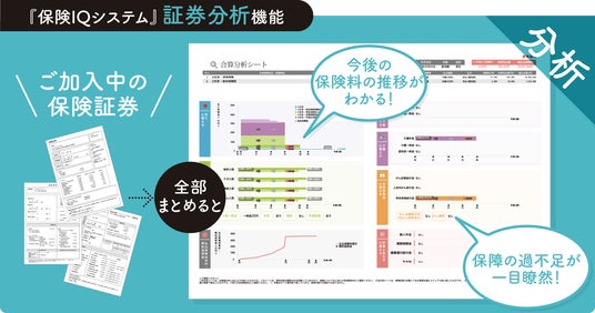 『保険クリニック(R)』では、独自開発の「保険IQシステム(R)」を利用し、コンサルタントの主観に偏らずお客様のご意向に沿った保険選びをお手伝いしております。 「保険IQシステム(R)」のメイン機能である「証券分析機能」と「比較機能」は非常にご好評いただいております。■証券分析機能■