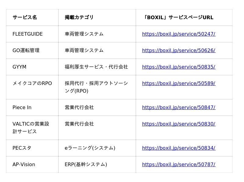中でも、車両やドライバーの情報管理を最適化する「車両管理システム」は、効率化だけでなく、法令遵守の観点からも導入検討が進んでいます。「BOXIL」における車両管理システムの掲載数は、今回新たに掲載された2サービスを合わせて25となりました(※2)。
