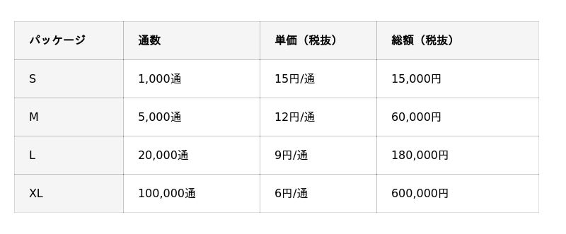 - 月額に送信枠が含まれるため、使わない月も固定費が発生する