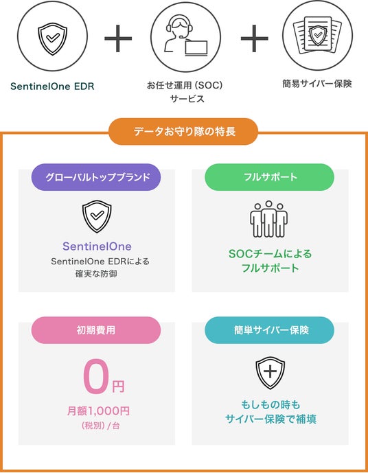 サービス内容:SentinelOne EDR、SOCサービス、簡易サイバー保険