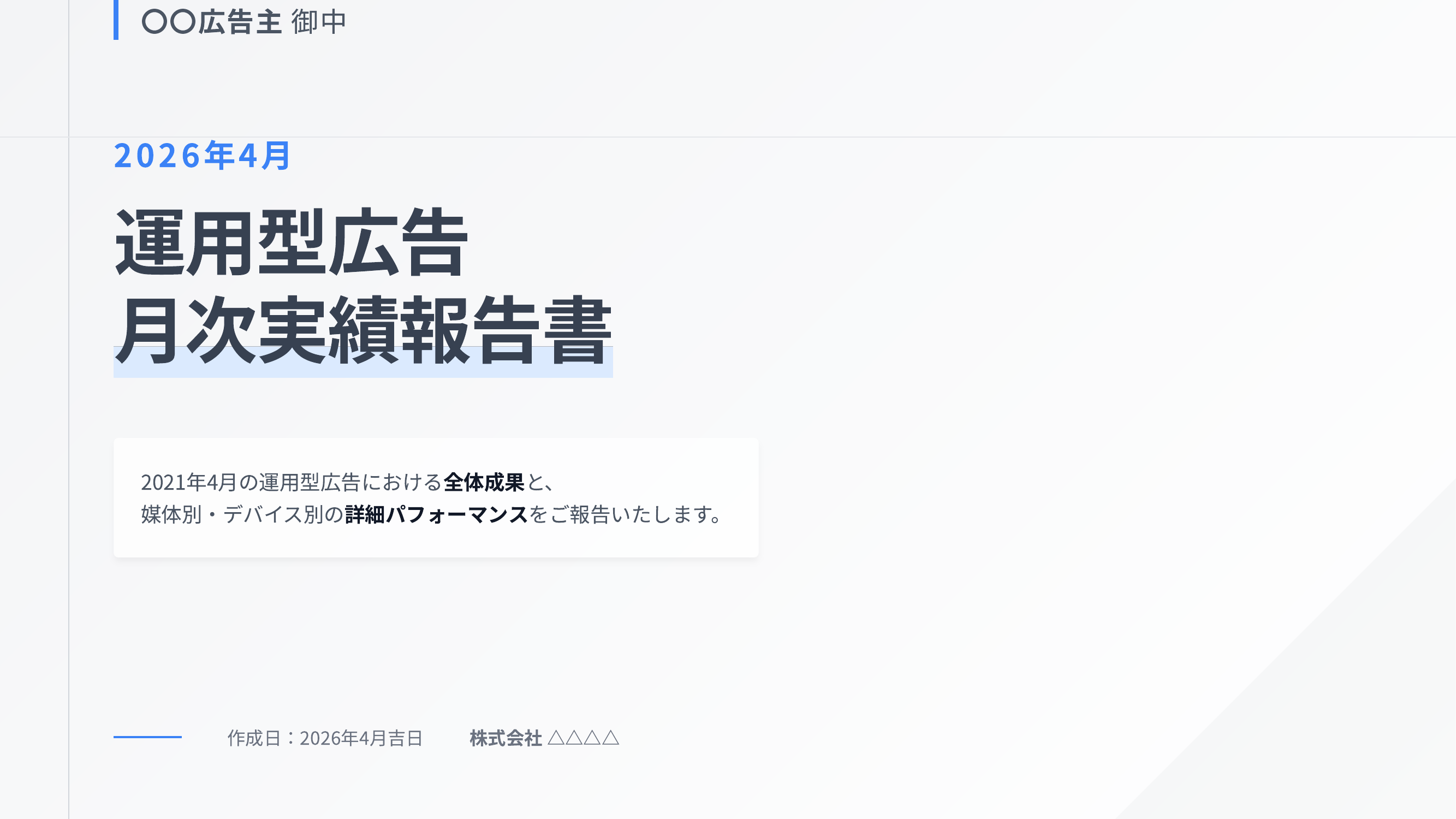 日本発の動画生成AI「NoLang(ノーラン)」を提供する株式会社Mavericks(本社:東京都文京区、代表者:代表取締役社長 奥野 将太)は、NoLangのスライド生成機能に広告・クリエイティブ業界向けのサンプルスライドを新たに追加しました。クライアント提案資料や月次レポート、広告ルール変更の説明資料、クライアント別バリエーション展開、社内トレーニング資料など業界で頻出する5つの活用シーンに対応したテンプレートを用意しており、オリエンシートPDFや運用レポートなどの既存資料を投入するだけで、要点が整理されたスライドからナレーション付き動画までを一気通貫で自動生成できます。専門的なデザインスキルがなくても高品質な提案資料・レポート・研修コンテンツを短時間で制作でき、広告代理店やクリエイティブエージェンシーの現場における資料作成負担を大幅に軽減します。