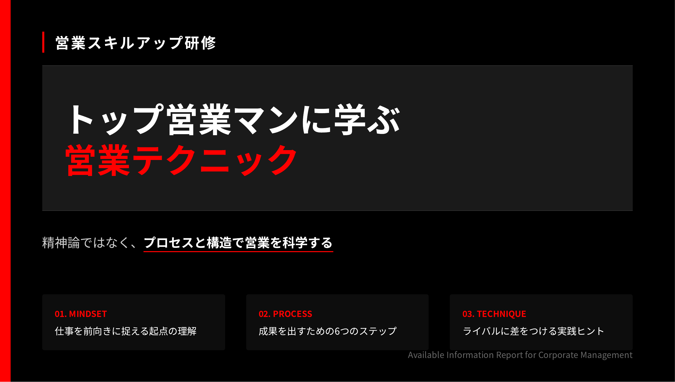 ■提案・レポート・研修まで対応する4つのサンプルスライド