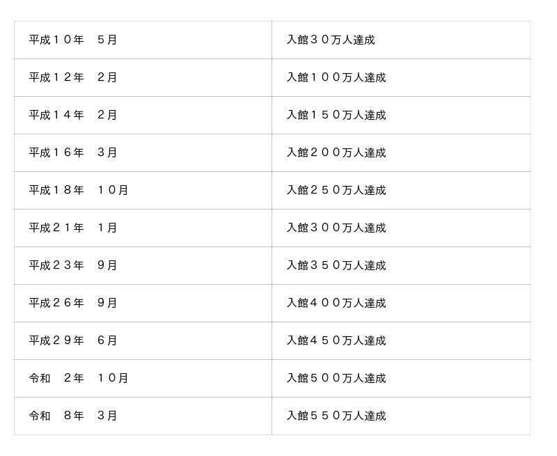 令和8年4月下旬~5月にかけて550万人達成イベントを実施予定。