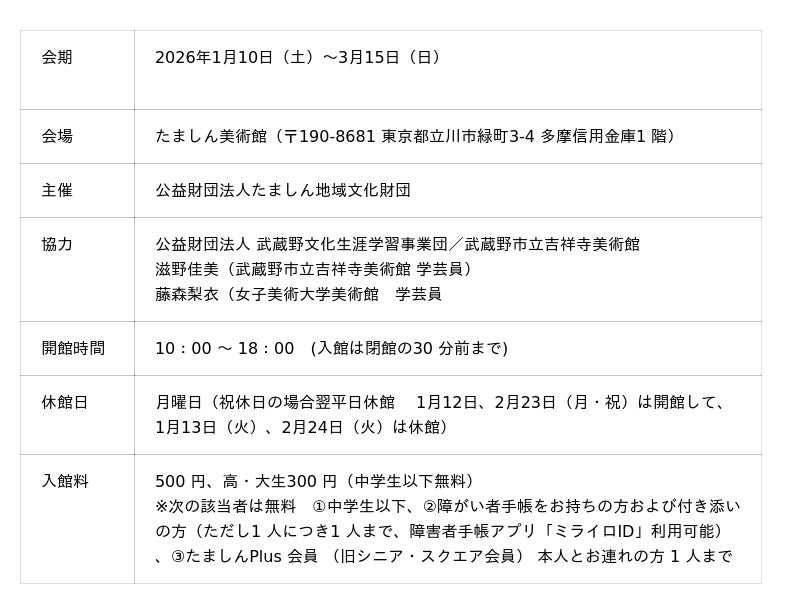 主催者(お問合せ先) たましん美術館(運営:公益財団法人たましん地域文化財団)