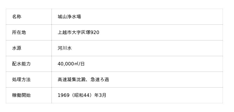 城山浄水場は上越市内最大規模の浄水場で、合併前上越市のおよそ6割に水道水を供給しています。1968(昭和43)年の竣工から50年以上経過し老朽化が進んだ2021(令和3)年度、上越市ガス水道局はその大規模改修工事にかかる設計・施工を行う事業者を設計・施工一括発注方式(DB方式)で募集し、審査の結果、水ingエンジニアリング・田中産業株式会社(住所:上越市土橋)共同企業体が本事業の施工者として選定されました。