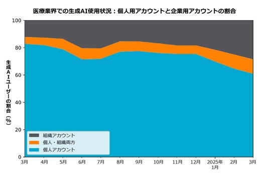 この問題をさらに深刻化させているのが、「シャドーAI」の存在です。その割合は過去13カ月間で大幅に減少したものの、医療業界の従業員のうち43%は依然として生成AIの個人アカウントを業務で利用しており、セキュリティチームによる、データ漏えいの監視が十分に行えていない状況です。このリスクに対処するため、医療機関は承認済みの生成AIアプリケーションへの移行を急ピッチで進めています。所属する組織の管理下にある生成AIアプリケーションを利用する従業員の割合は、対象期間中に18%から67%に急増し、全業界平均(26%から62%)を上回る成長を記録しました。