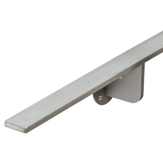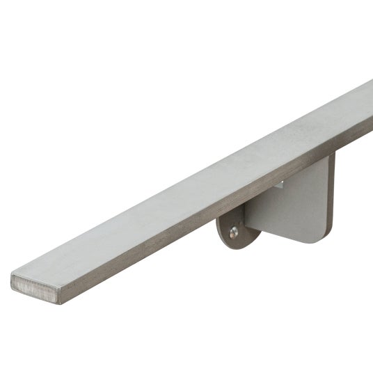 ステンレスが詰まった、厚さ9mmと12mmのフラットバーを採用。手摺棒単体でも強度が抜群でたわみにくいため、最大長3,800mmでも9mm厚の場合ブラケット4つ、12mm厚の場合ブラケット3つと、少ないブラケットで十分な強度を確保でき、空間デザインの自由度を広げます。