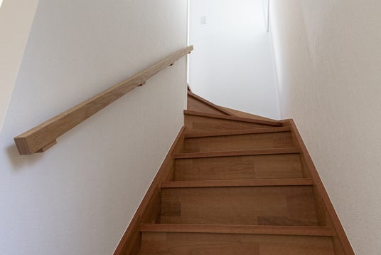 木の手摺木の質感が感じられる、棒の部分はもちろん、受けの部分まで全部木でつくられている手摺です。