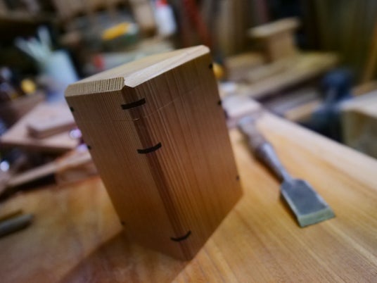 ・木材の接合強度を上げるだけでなく、見た目のポイントとなる黒檀の千切り加工を採用