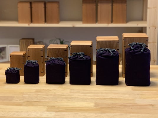 コンパクトな手元供養実現のため、粉骨加工後の遺骨量に応じて最適なサイズの木箱を提供します。