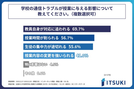 小中高等学校の教職員として働く人の6割以上が、学校の通信環境に不満を感じている!株式会社ITSUKIが、「学校現場におけるICT活用と通信環境の実態調査」を実施!