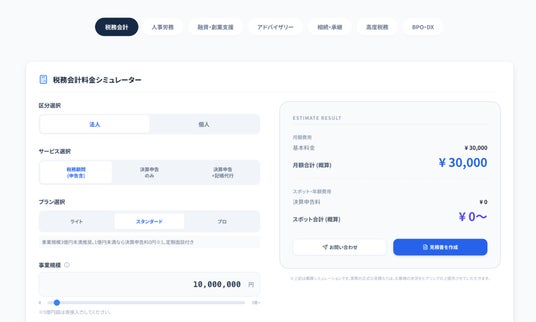 当グループが提供する全サービスについて、お客様ご自身で自由に条件を選択し、料金をシミュレーションして見積書を発行できる機能を搭載しました。