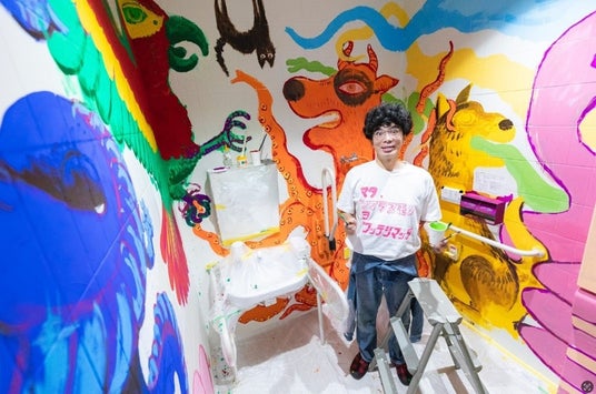 本年10月より、「人が集い、心が動く、楽しくなれる場所をつくる」ことを目的に本プロジェクトを始動。中でも“日常の中でアートを身近に感じる空間”として注目されているのが、トイレをキャンバスに見立てたアート演出。俳優で芸術家の片桐仁さんをはじめ、計11名の著名なアーティストが12カ所のトイレにアート作品を制作しました。