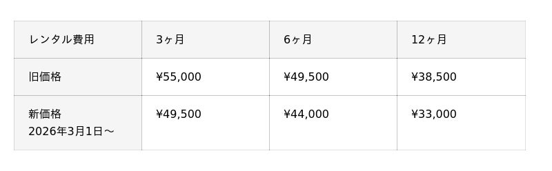 (従来のレンタル費用より5,500円値下げ)