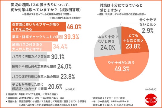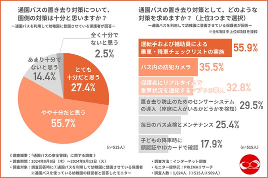 チェックリストの導入による確認体制の強化や、バス内を確認できる防犯カメラ、園児の乗車状況をリアルタイムで通知してくれるアプリなど技術面を充実させることでのさらなる安心感の工場を望む声が明らかになりました。