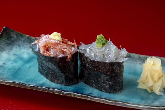駿河湾特産の桜えび。秋漁で水揚げされた新鮮な生の桜えびを軍艦巻に仕立てています。吉田町産の生しらすの軍艦巻とあわせ、江戸前寿司の技を堪能できます。