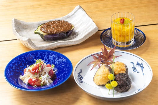 静岡市の伝統野菜「折戸なす」は味噌田楽で、桜えびは折戸なすや銀杏とかき揚げにしています。ホホホタケと自然薯は柚子風味の和えもので。レッドオーレトマトのジェラートはデザートで。「ゆかり」ならではの創作料理をご堪能いただけます。