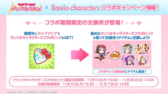 11月10日(月)15時より「ガルパ×サンリオキャラクターズコラボアイテム交換所」が登場いたします。