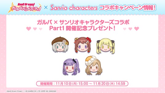 11月10日(月)15時から「ガルパ×サンリオキャラクターズコラボ開催記念ミッション!」を開催いたします。