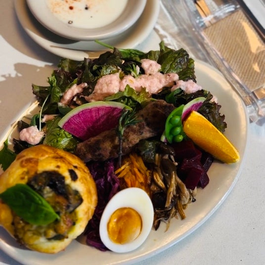 本日の選べるマフィンと季節の野菜デリたっぷりの「ランチプレートセット」は、満足感たっぷり!!︎