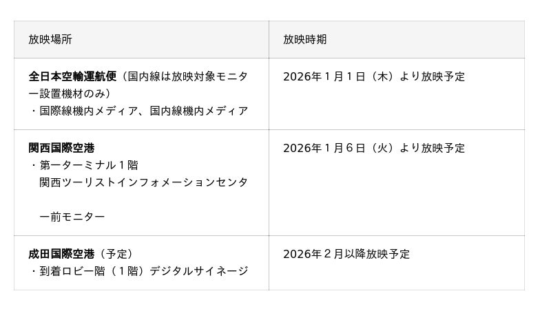 一般社団法人日本民営鉄道協会(事務局:東京都千代田区、会長:杉山健博)は、2026年1月以降、インバウンドの持続可能な発展に向けた訪日外国人受け入れ環境整備の一助として、日本の鉄道利用マナーについての啓発動画を全日本空輸運航便(国内線は放映対象モニター設置機材のみ)と、関西国際空港、成田国際空港において放映します。
