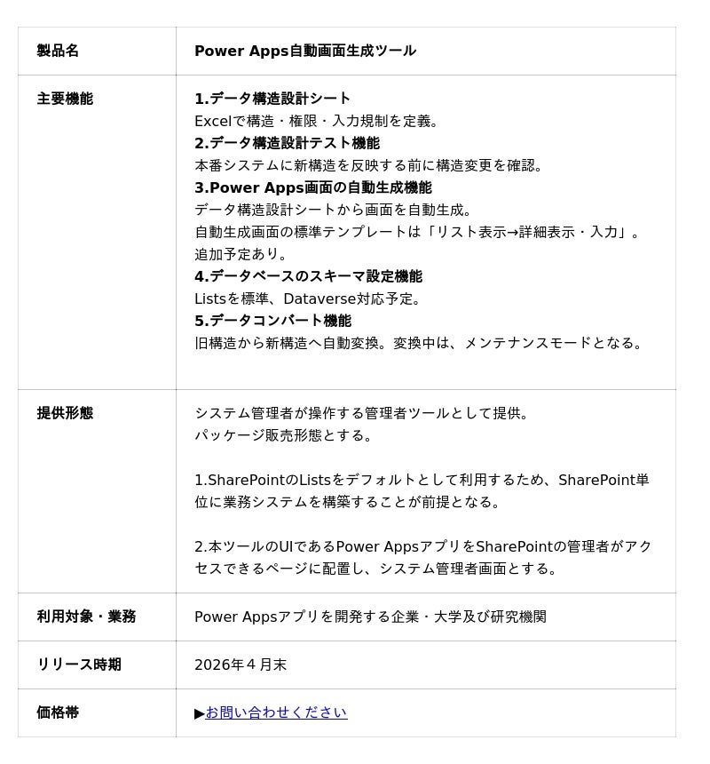 株式会社メディアフュージョン(本社:大阪市北区)は、Microsoft 365のローコード開発環境Power Apps向けに、Excel設計書から入力画面とデータベース構造を自動生成できる「Power Apps 自動画面生成ツール」を、2026年4月末より正式に提供開始します。