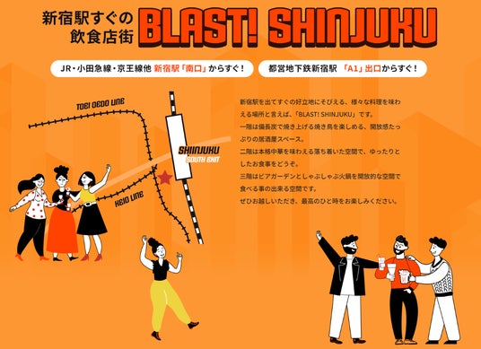 ~新宿駅徒歩5分!会社宴会・団体利用に最適、全500席以上の大型FOOD HALL『Blast新宿』~