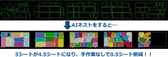AIネスティングで材料費削減。自動化で作業時間を大幅に短縮。