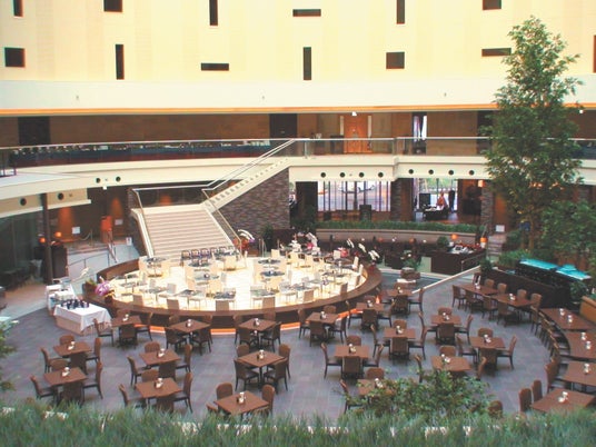 会場は、11層吹き抜けのアトリウムに位置するレストラン ファインテラス。自然と調和した雰囲気の中で、お子様から大人までご一緒にお楽しみいただけます。2025年11月11日(火)~12月25日(木)の期間中は、赤と白で彩られた高さ6mのクリスマスツリーがアトリウムに登場。クリスマスの華やかな雰囲気をさらに盛り上げます。