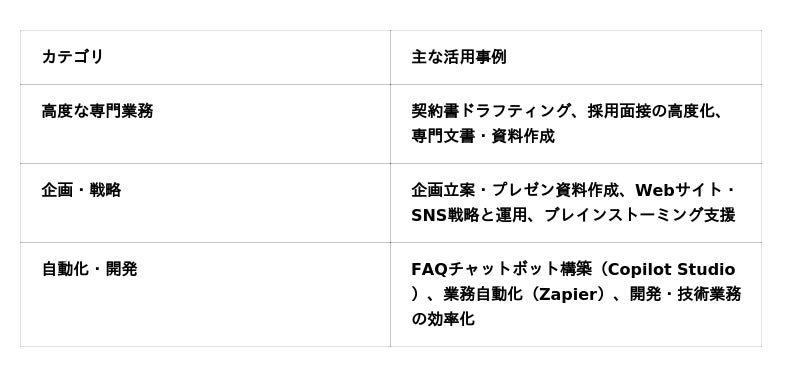 Web検索、議事録作成、レポート要約、グラフ生成など、日常業務のAI支援を実践的に学習。