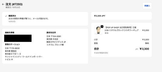 5.当日ポップアップショップにご来場の際は、メールや注文画面をご準備いただき、記載の情報をスタッフにお伝えください。