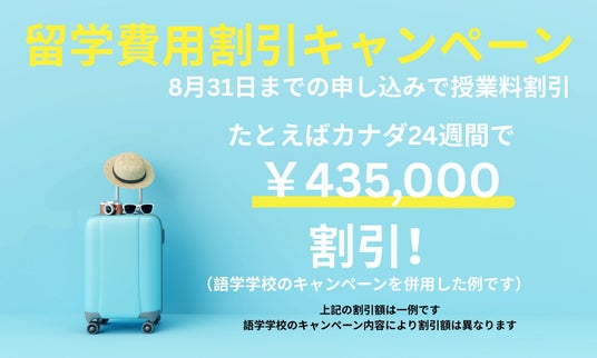 【対象者】2025年8月31日までに4週間以上のご留学をお申し込みの方。