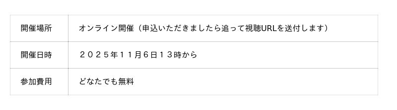 - 事前登録や参加申込方法:こちらからお申し込みください