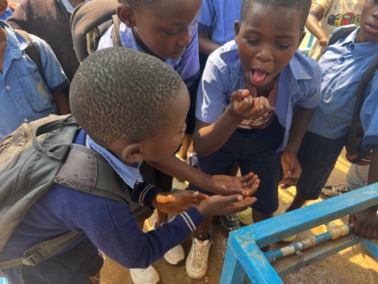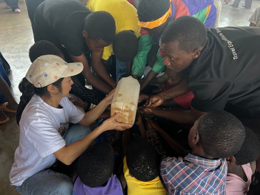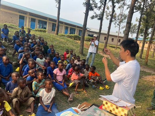 「AOGA SOAP」は、児童が配合・形・使い方の工夫を重ねて完成させた学校発の石けんです。ルワンダでは首都キガリを拠点とする若者たちの居場所支援団体African Mirror、キガリ市内の小学校KIBAGABAGA SCHOOLと協働し、手洗い授業を実施。子どもたちは楽しく学びながら衛生の大切さを体験し、同校からの石けん提供と学びのメッセージが現地の実践へとつながりました。
