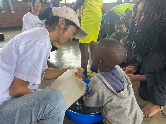 ルワンダの子どもたちにAOGA SOAPで衛生授業を行うなかよし学園